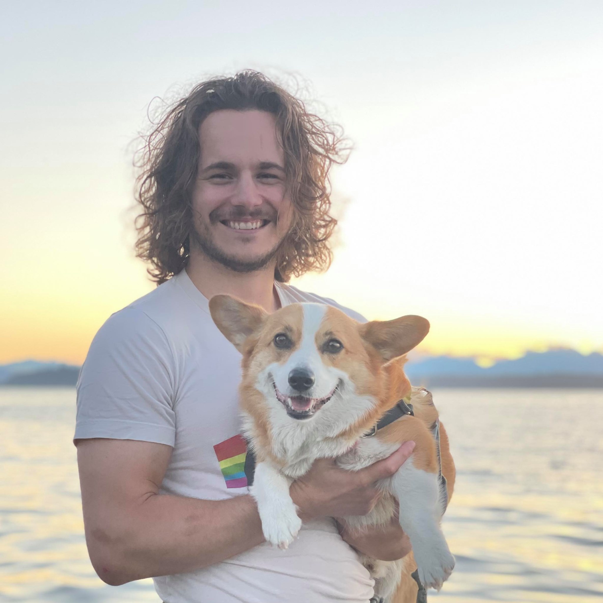 I expect I'll be able to load the image into an AI editor, erase my long hair, give a prompt like "man with short messy hair holding a corgi" and voila.